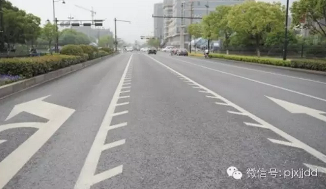 可变车道,是指车道内侧划了多条斜线,有点像趴下的"非"字,顾名思义就是能随时根据交通流量更改指示方向的车道。