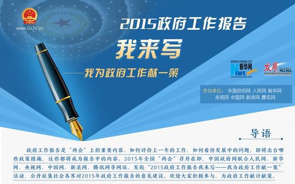 点击上图参与“2015政府工作报告我来写——我为政府工作献一策”活动