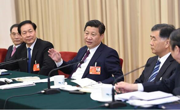 图为:习近平总书记参加十二届全国人大二次会议安徽代表团的审议。
