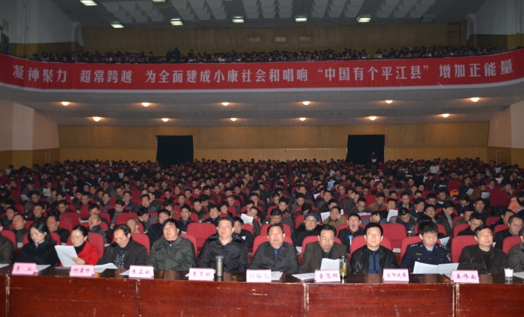 2月25日,2013年中共平江县委工作会议在县影剧院隆重召开。会议贯彻执行了党的十八大及省市党代会精神,传达了中央、省、市经济工作会议要点,回顾总结了2012年我县各项工作,并对2013年工作进行了安排部署。会议动员号召全县上下进一步解放思想、鼓足干劲、狠抓落实,为全面建成小康社会、唱响中国有个平江县作出新的更大贡献。