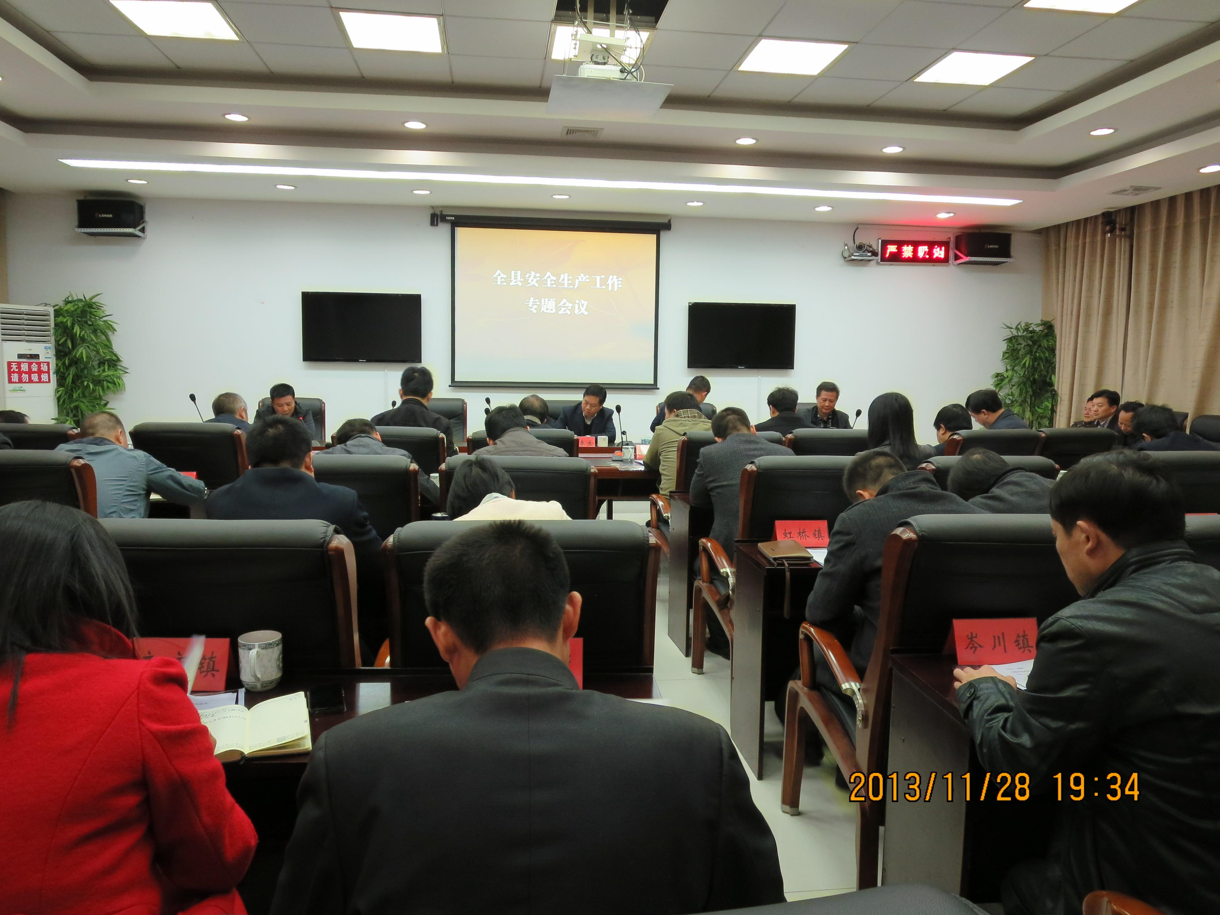 会议由县政府副县长陈淼主持,县安监局局长王火丁通报了当前全县安全生产工作形势,政府办副主任刘克佳组织与会人员学习了习近平总书记关于安全重要讲话精神。全县41家安委会成员单位、27个乡镇和3个园区主要负责人参加会议。