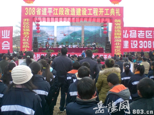 图为在平江加义镇举行的308省道平江段改造建设工程开工典礼现场。 李钧 摄