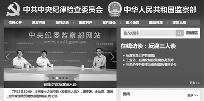 “足球是公认的‘第一运动’,却牵扯到非常严重的腐败问题。”“小的制度可能会带来大的变化,所谓八项规定改变中国。”……这些生动新颖又意味深长的“金句”,来自中纪委官网的新栏目。7月15日20时,中央纪委监察部网站推出视频访谈节目“反腐三人谈”,邀请中央党校党史教研部主任谢春涛、中国人民大学国际关系学院副院长金灿荣、中国社科院中国廉政研究中心副秘书长高波一同做客在线访谈。这是中央纪委监察部网站首次邀请学者做客在线访谈,并以轻松对话的方式“解码”反腐败问题。
