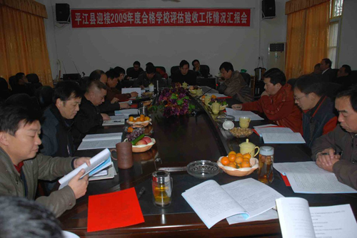11月16日下午,我县迎接市2009年度合格学校评估验收工作汇报会在县教育局三楼会议室召开。市评估团成员,县政府办副主任余昭彰,县教育局全体班子成员、正副主任督学、相关股室负责人参加了汇报会。