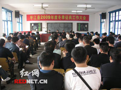 10月19日上午,湖南省平江县征兵工作会议在县武装部召开,就今冬征兵工作进行全面部署,会议表彰通报了2008年征兵先进单位和个人,并签订了《2009年征兵工作责任书》。