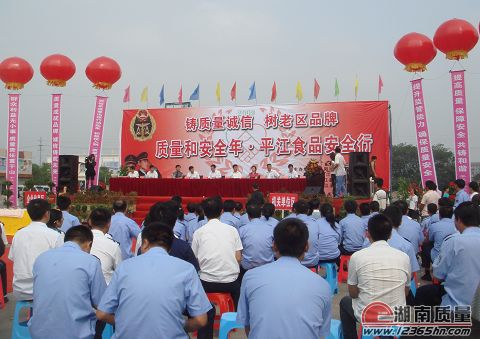 9月10日,岳阳市质监局联合平江县人民政府隆重举办以“铸质量诚信,树老区品牌”为主题的质量和安全年?平江食品安全行活动,为平江食品产业搭建宣传展示平台,督促食品行业强化自律,提升质量诚信意识。
