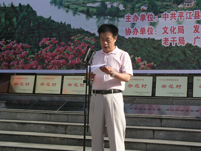 本报讯 (特约记者 黄振) 7月20日,平江县委机关气球高悬、彩旗飘扬、锣鼓喧天,当地近千名干部群众共同参与“百里文明走廊建设——文明创建进农家”启动仪式,10个文明创建示范村和10个村级图书室正式授牌。当天,各相关单位还前往伍市镇长明村示范点开展了系列文明创建活动,80户“十星级文明户”得到表彰,标志着该县创建“百里文明走廊”正式启动。