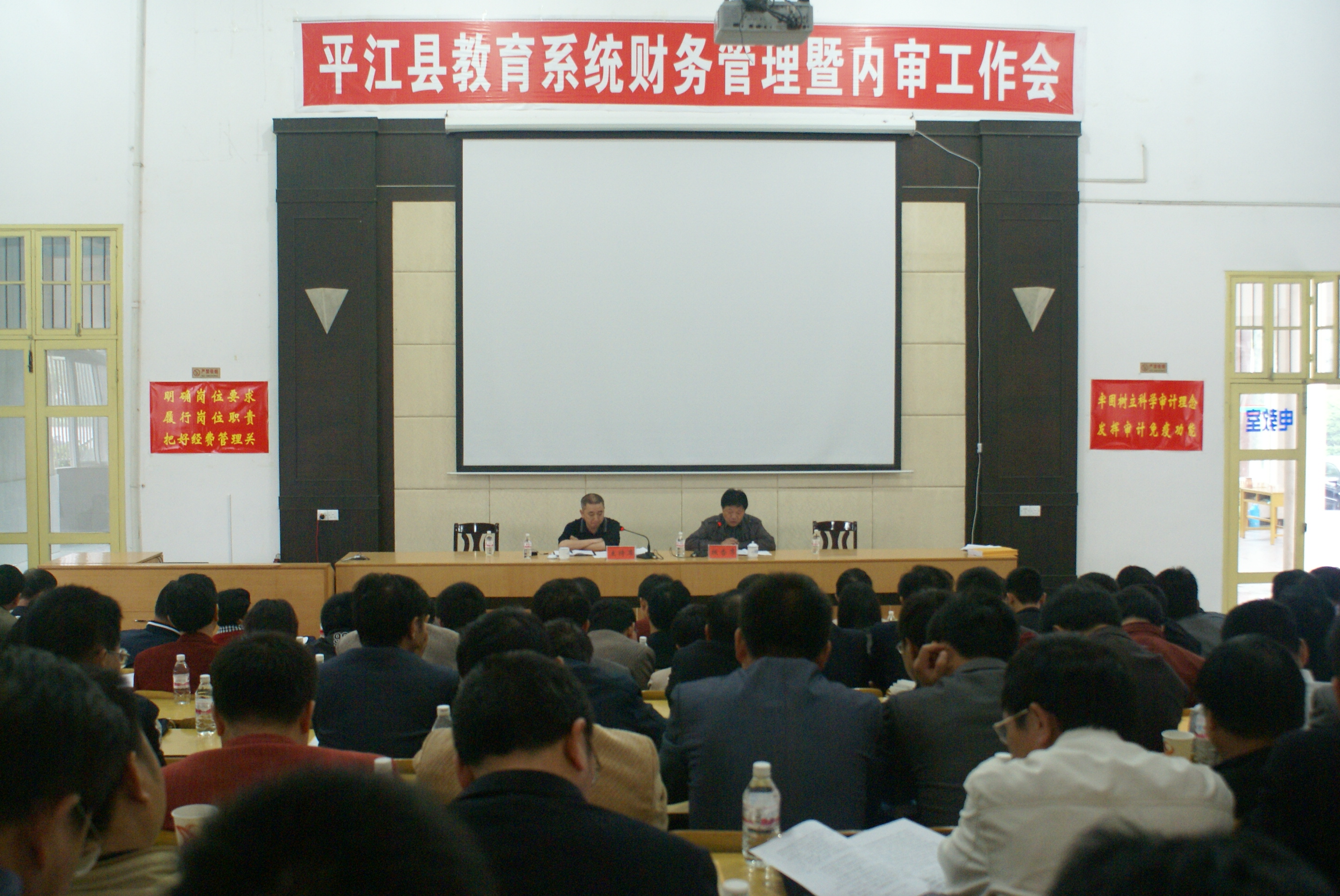 5月27日上午,平江县教育局在平江七中召开系统财务管理暨内审工作会,会议由县教育局局长吴定辉同志主持。来自全县各高中学校、各乡镇中心学校、初中学校的校长、财会和审计人员,以及县财政局、教育局相关股室的人员共260余人参加了大会。