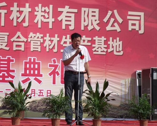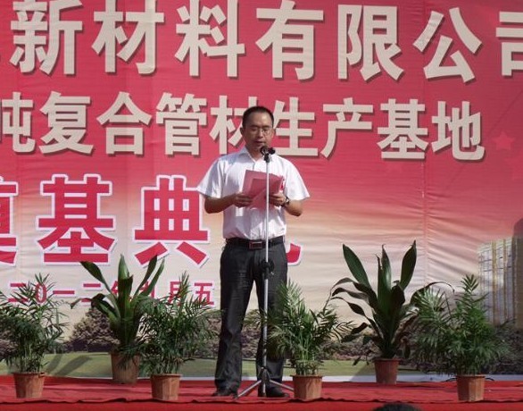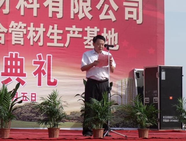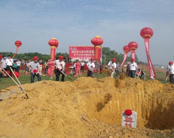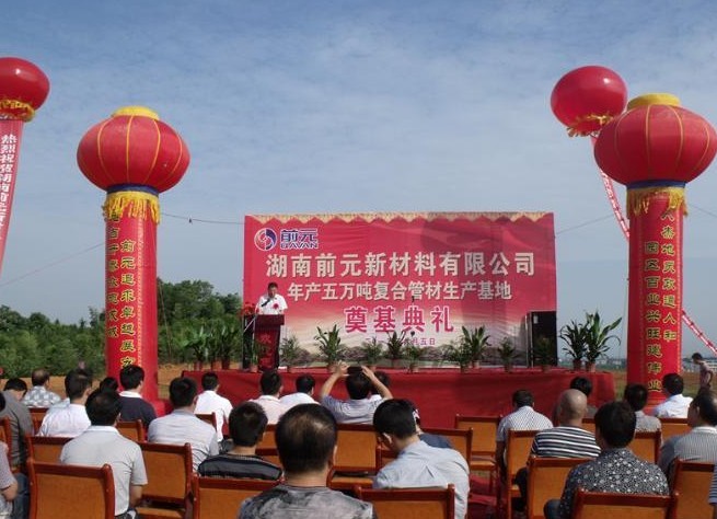 8点58分,徐教凡宣布湖南前元年产50000吨复合管材生产基地正式开工,与会领导和公司负责人共同为项目培土奠基。