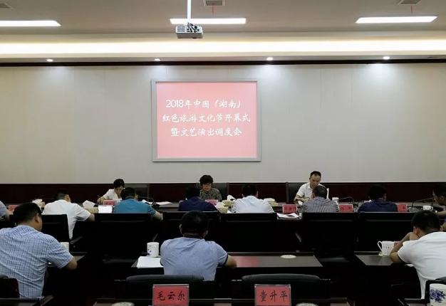 会议听取了2018年(湖南)红色旅游文化节开幕式暨文艺演出筹备工作、票务方案、现场方阵设置、分会场活动组织等方面的工作汇报。围绕具体的工作细节以及相关方案,与会人员进行了研究讨论。