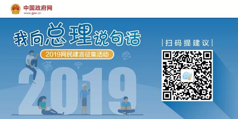 扫描二维码,参与2019“我向总理说句话”网民建言征集活动,为政府工作提意见建议。