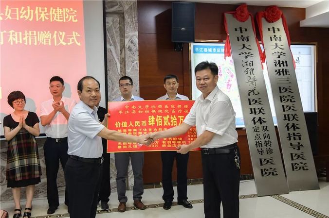 △中南大学湘雅医院党委书记张欣为平江县妇幼保健院授捐