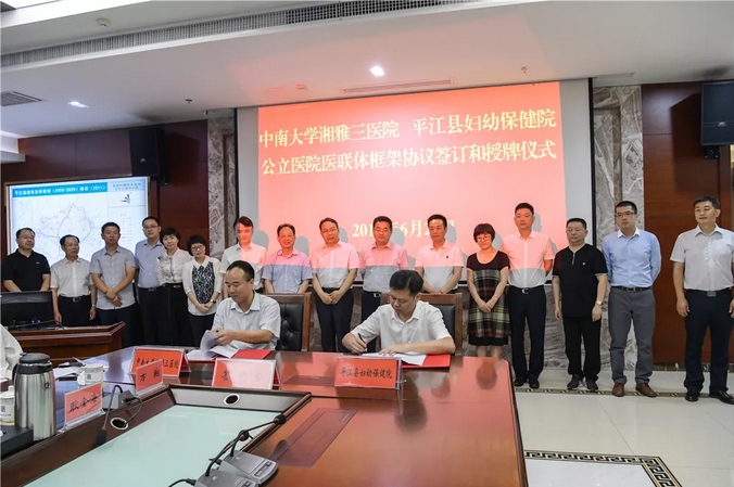 9、中南大学湘雅三医院与平江县妇幼保健院签订公立医院医联体框架协议,县妇幼保健院被授牌“中南大学湘雅三医院医联体指导医院”