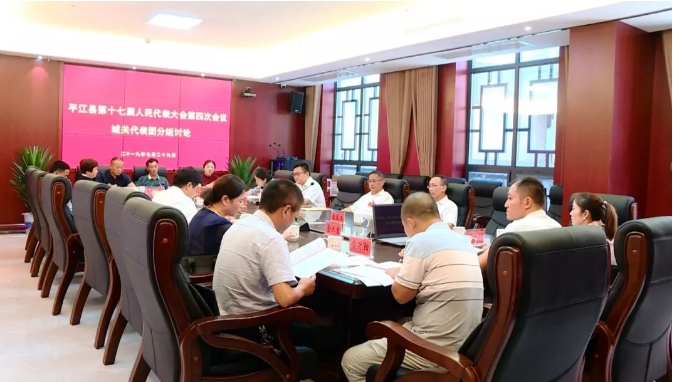 7月30日,参加平江县十七届人大四次会议的代表们,分组酝酿、讨论了各项选举候选人名单。县领导汪涛、黄伟雄、黎耀辉、胡伟、周峰、戴领梅、童驾辉、刘裕凡、李泓、吴姣姣等分别出席各代表团分组讨论。