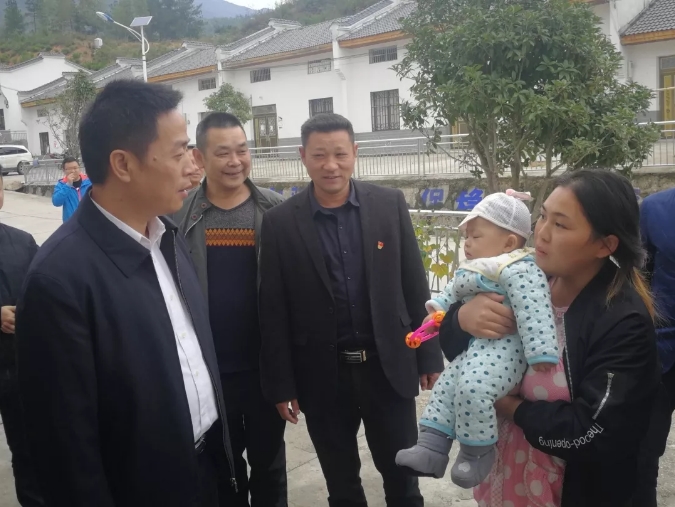 幕阜新村由原来的柘坪村和瑶田村合并而成,该村唐雪花一家曾经是汪涛的结对帮扶户,2017年已成功脱贫。如今,唐雪花家住进了村易地搬迁安置点的新房,孙女李桃桂去年结了婚,今年还生了个大胖小子,孙女婿在外打工,唐雪花被聘为村里的生态环保员,一家子的生活幸福安详。汪涛专程来到唐雪花家,在新房里仔仔细细转了一圈,询问他们的近况,十分高兴和欣慰,为李桃桂送上祝福:“愿你们幸福美满,用勤劳的双手将日子越过越好!”