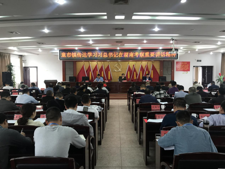 9月29日上午,童市镇召开学习贯彻习近平总书记在湖南考察时的重要讲话精神专题会,会上传达学习了习近平总书记在湖南考察时的重要讲话精神。各部门负责人、各村支部书记、村主任和扶贫专干、贫困村驻村工作队以及全体机关干部参加,童市镇党委副书记、镇长易强主持会议。