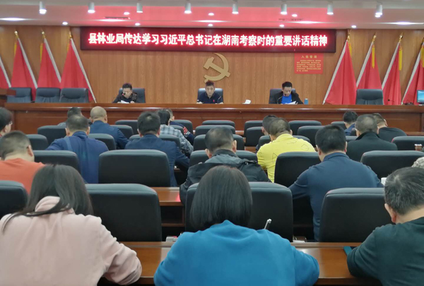 9月29日,县林业局召开中心组(扩大)学习会议,传达学习习近平总书记在湖南考察时的重要讲话精神。局班子成员、股室负责人;各国有(森工)林场场长、书记,苗圃主任、书记参加会议。