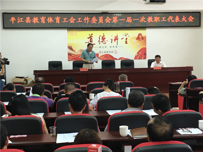 上午9时,大会在嘹亮的国歌声中拉开序幕。余建斌代表县教育工会工作委员会作工作报告,戴定芳代表县教育工会作财经工作报告。