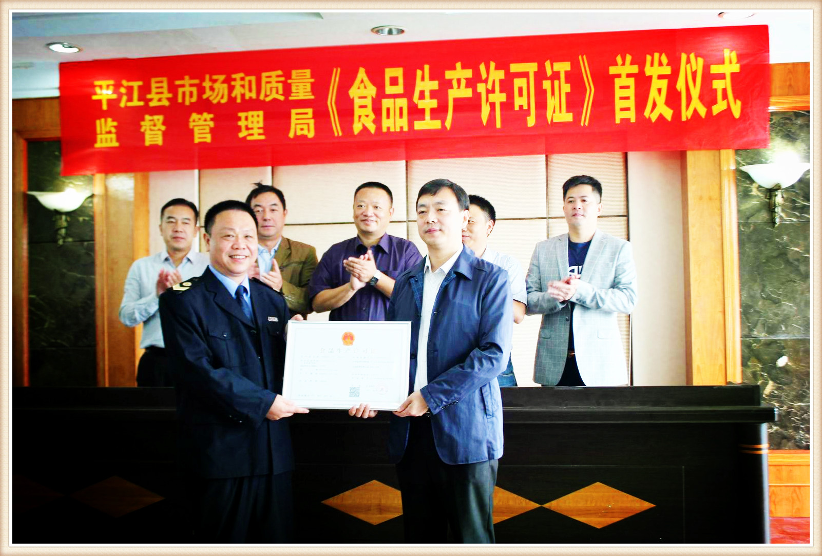 9月30日,平江县市场和质量监督管理局向今麦郎面品(平江)有限公司颁发《食品生产许可证》。这是全市首份以县级局名义核发的《食品生产许可证》,标志着省食品药品监督管理局赋予省直管试点县食品生产行政许可审批权限在我县正式实施。