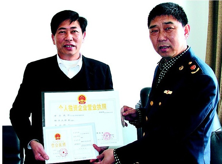 日前,平江县工商局工作人员将“平江县小燕现代家庭农场”个人独资企业营业执照送到了伍市镇村民凌鑫凡手中。这是湖南第一家经工商部门正式注册登记的“家庭农场”。“春江水暖鸭先知”,新年伊始,平江县工商局根据中央一号文件精神,立足该县农业发展实际,研究出台帮扶措施,深入开展调查摸底,广泛宣传引导,加大行政指导力度,创新准入机制,积极助推有一定科技含量、有一定经营规模的农业大户向规模化、集约化、商品化生产经营模式转型,引导其办理“家庭农场”营业执照,取得市场主体资格。