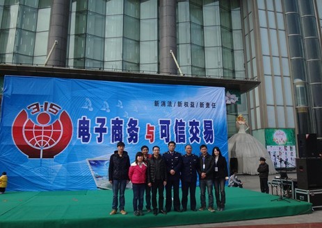 图为平江县工商局网络交易监督管理办公室负责同志和部分平江网商代表参加3月14日岳阳市“电子商务与可信交易”3·15主题活动