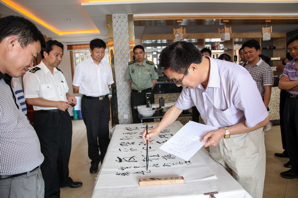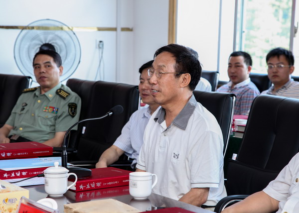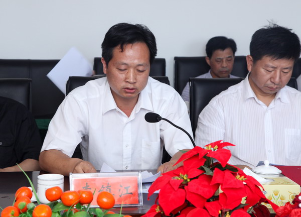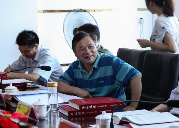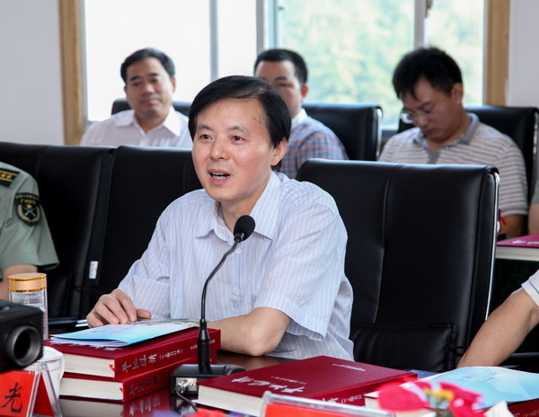 县委常委、县委办主任、《平江风情》编委会主任李镇江向与会嘉宾作工作汇报