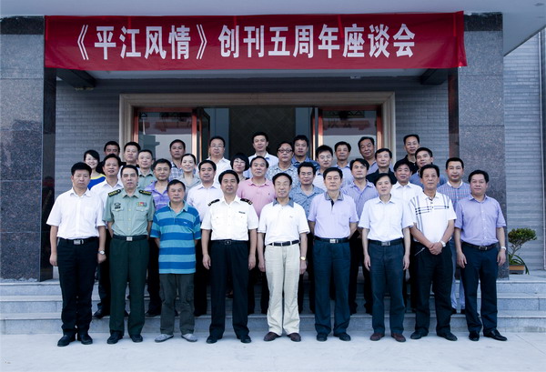 7月13日,平江县史志办召开了《平江风情》创刊五周年座谈会。会议邀请了平江籍在外乡友20人,其中包括国防大学少将、中国将星书画院执行院长黄彬,海关总署《中国海关》杂志社社长、中国期刊协会常务理事、北京天岳校友会会长曾庆龙,省委宣传部原副部长,湖南省新闻工作者协会主席、省委正厅级督办专员李凌沙,省文联巡视员、中国作家协会理事、享受国务院特殊津贴专家彭见明,岳阳市政协主席赖社光等领导,还包括来自全国各重要区域的平江乡友会会长。中共平江县委书记王洪斌,县委副书记、代县长谢春生等四大家主要领导和县内《平江风情》理事会代表和作者代表也出席了会议。