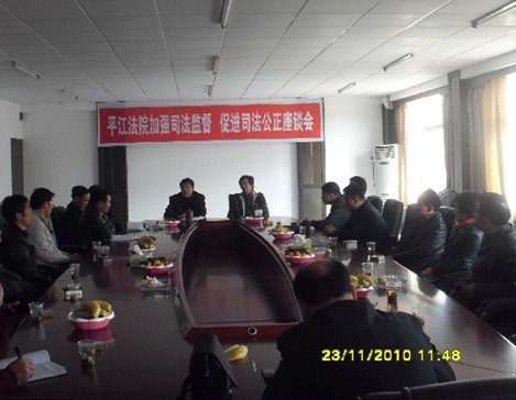 11月23日,平江法院自觉接受社会监督,特邀人大、政协、新闻媒体、律师、人民陪审员及法律工作者等社会各界代表,召开“加强司法监督,促进司法公正”座谈会,恳请这些代表对法院工作挑刺谏言。
