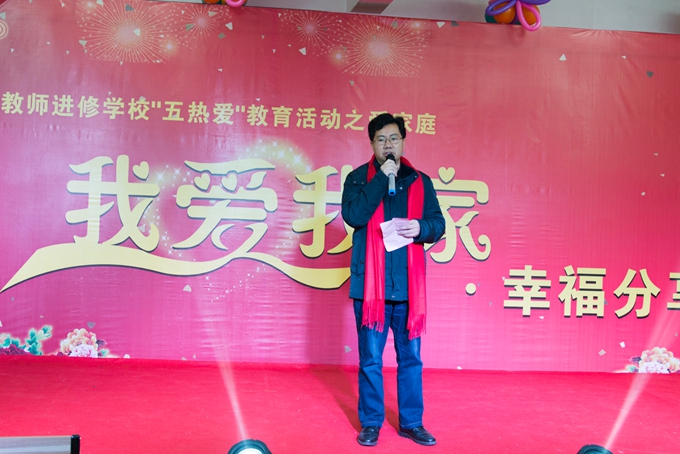 副局长童怀思作了热情洋溢的讲话。他认为“我爱我家•幸福分享”是小家庭聚焦到学校这个大家庭,总结过去,计划来年的好活动。称赞活动“主题好”——爱祖国这个最大的家,爱学校这个大家,爱每一个小家。“形式好”——一是形式多样,有聚餐、畅谈,还有才艺表演。二是人员众多,在岗的、离退的,大人、小孩欢聚一堂。“氛围好”——进修学校2016年取得丰硕成果:教师培训获得省里肯定,电大工作在全市独占鳌头,楚才部高考再创辉煌;学校人际关系氛围好,其乐融融,各个家庭都很有才艺。 “大家好”——一张张笑脸,老同志很健康,中青年很阳光,小孩很快乐。他希望大家2017年为自己的健康作贡献,为自己的家庭和睦发展作贡献,为祖国的繁荣作贡献。
