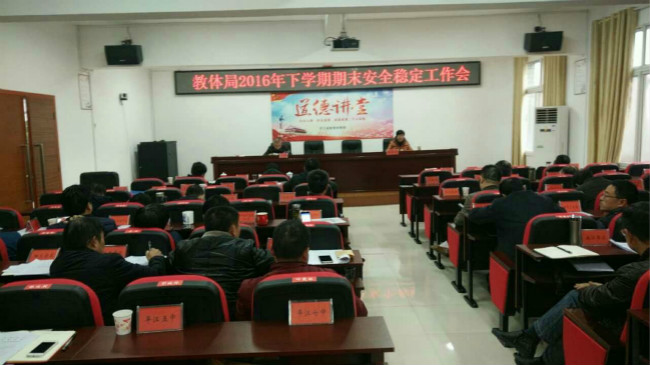 “安全工作大于天”,年末岁初,为确保全县教育系统的安全稳定,让广大师生能欢度寒假,过一个祥和喜庆的春节,元月6日下午,平江县教育体育局召集全县12位学区主任与6名县直学校校长,在该局二楼会议室召开2016年下学期期末安全稳定工作会。会议由该局副局长李炼煌主持,局党委书记吴定辉作中心发言,全体局党委领导班子出席会议、机关各股室股室长共同参与。