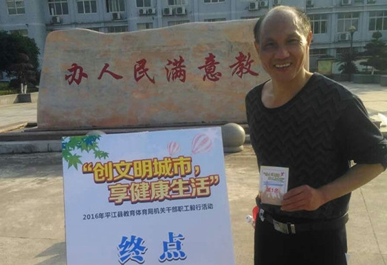 12月30日下午2:30,局机关组织“创文明城市,享健康生活”机关干部毅行挑战活动,以平江县教体局机关大门为起点及终点,途经鸿源加油站、悦天城,直抵平汝高速连接口后再沿原道返回,路途共5个签到处,全程8.3km,160多名干部共同参与并完成全部赛程。年近花甲老将局党委副主任督学张兴爆冷战胜众多体校毕业的青年小伙,一举夺魁,余万兴、魏宏图分别收揽亚军与季军。