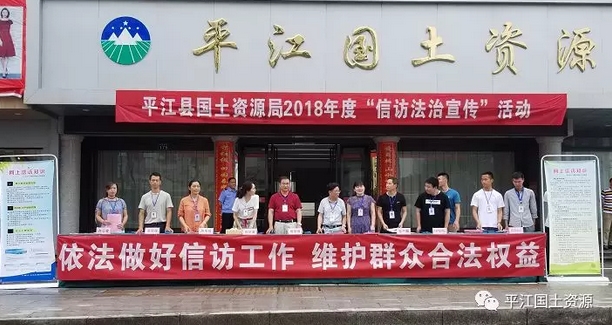 5月30日下午,平江县国土资源局在城关镇碧潭路开展信访法治知识宣传活动,面对面为群众答疑解惑。