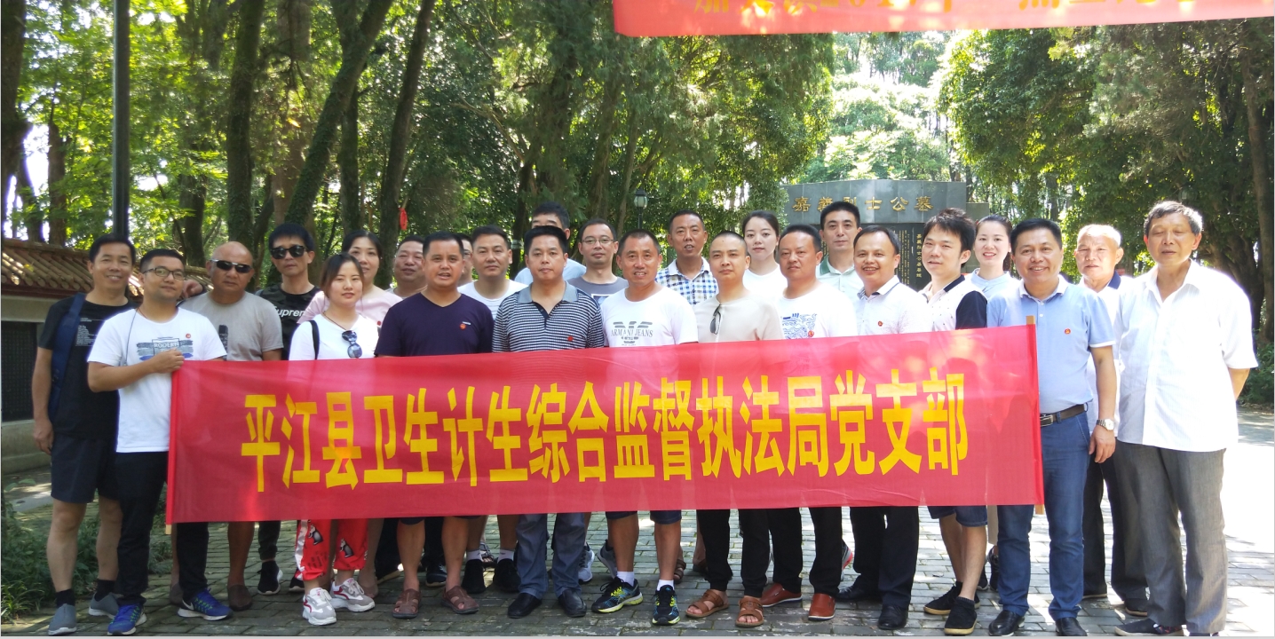 6月25日,县卫生计生综合监督执法局到加义镇烈士陵园、新四军平江通讯处旧址、长寿镇仙姑岩红军营等红色教育基地开展“牢记使命,不忘初心,缅怀先烈,重走红军路”党员教育活动。