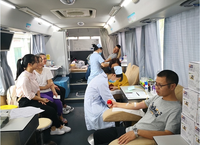 上午8:00,采血车到校后,参与献血的教师安排好手头工作,陆续来到现场。填表、登记、采血、化验、献血……很多是熟悉的面孔,也有是第一次参加的,他们无一例外脸上洋溢着微笑。“献血事小,救命事大!当想到我的鲜血可能会救人一命时,我的内心就无比激动,充满喜悦。”林苗芳老师献血后真诚地对笔者说。