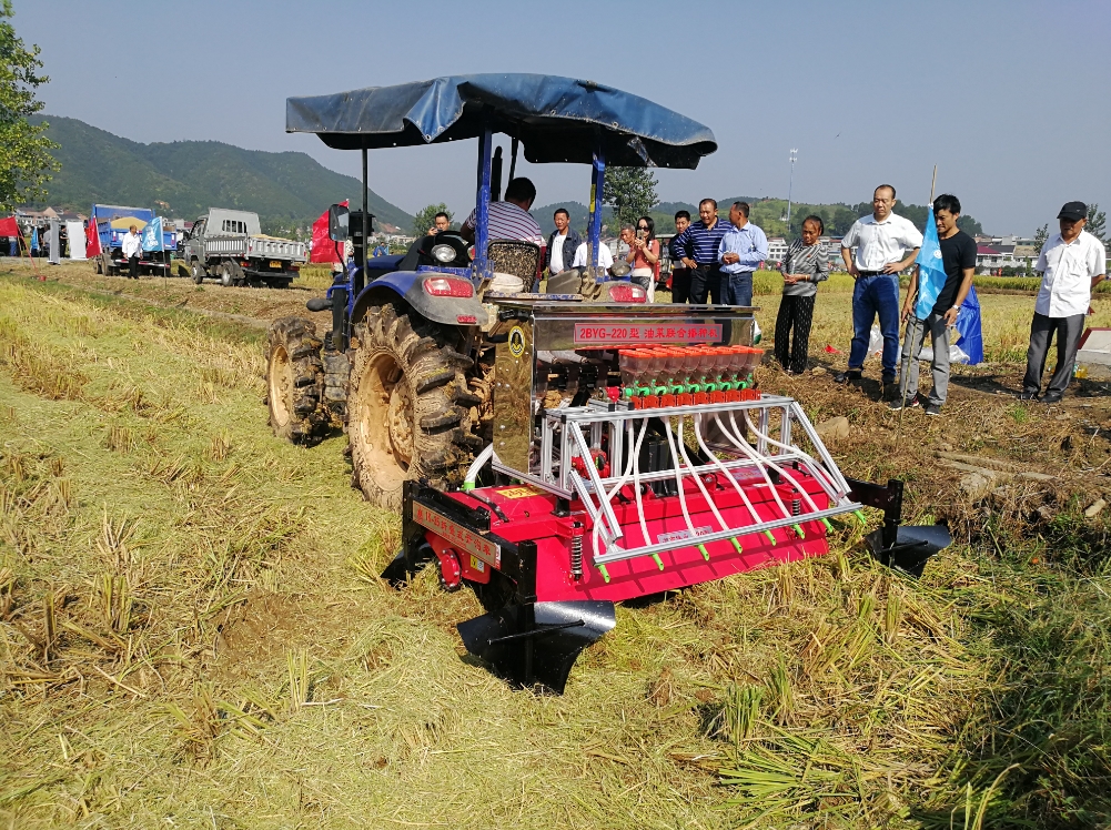 演示现场,学习人员深入田间、登上机具,认真向厂方技术工程师、现场讲解员了解机具性能、作业效果、适用范围等技术参数,并重点对今年在全县实行县财政累加补贴的新型机具(益阳伟业牌、河南豪丰牌油菜免耕直播机)的作业情况进行详细了解。