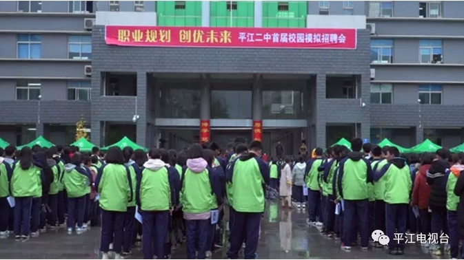12月5日,平江二中以“职业规划,创优未来”为主题的首届校园模拟招聘会举行。