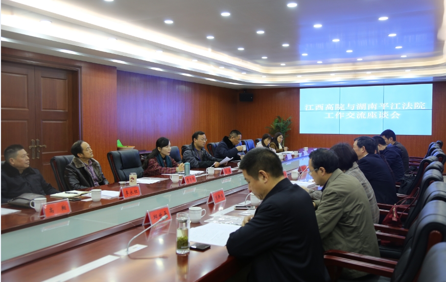 12月6日,江西省高级人民法院法官教育管理处处长黄爱和带领江西省景德镇市、鹰潭市、赣州市、宜春市、上饶市等5家中级人民法院政治部主任一行7人,到湖南省平江法院考察交流党建和文化建设工作,岳阳市中级人民法院党组成员、政治部主任谭颖,县人民法院党组书记、院长李明等陪同考察。