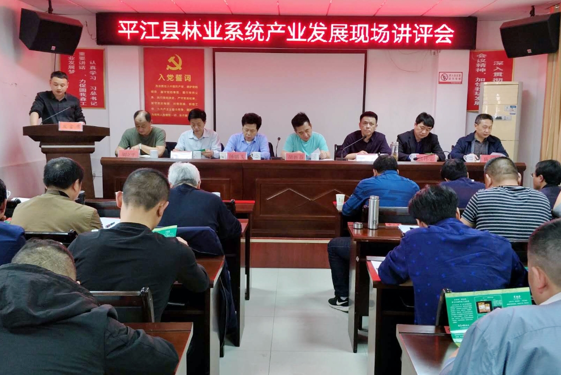 4月18日,平江县林业系统产业发展现场讲评会在加义森工林场召开。县林业局全体党组成员和相关股室负责人,国有林场场长、书记及森工林场的全体班子成员,苗圃主任、书记 100余人与会。