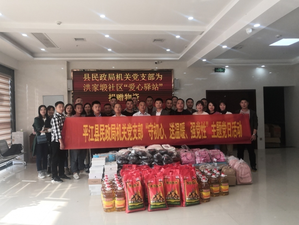 11月4日,县民政局根据“不忘初心、牢记使命”主题教育计划和党建工作实际,组织该局机关支部全体党员共计46人来到汉昌镇洪家塅社区开展“守初心、送温暖、强党性”主题党日活动,进一步强化主题教育成果,深化 “双带双心”党建扶贫主题活动成效。