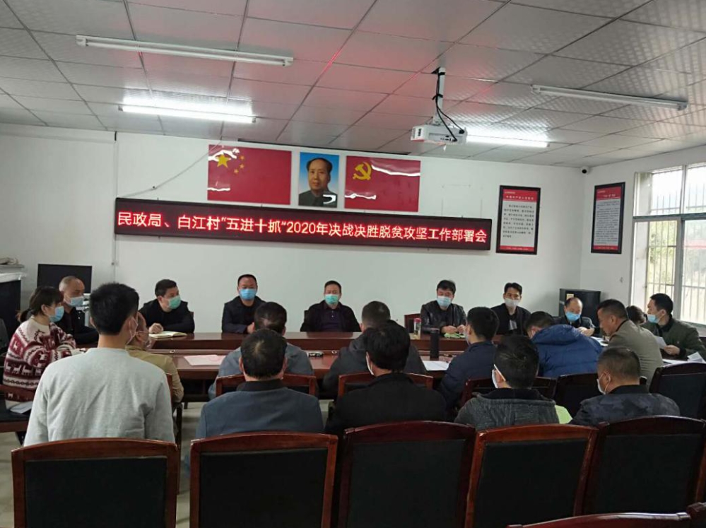 “要在坚持科学防治、精准施策,积极做好疫情防控的同时,启动扶贫车间建设,以解决村民的就业问题,确保防疫和脱贫攻坚两手抓、两手硬、两手赢!”县民政局党组书记、局长方定安在该局联合龙门镇白江村召开的“五进十抓”2020年决战决胜脱贫攻坚工作部署会上这样说道。