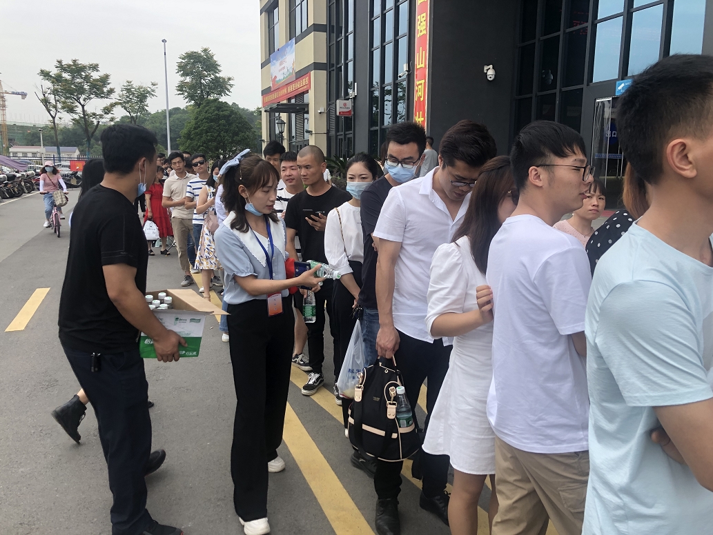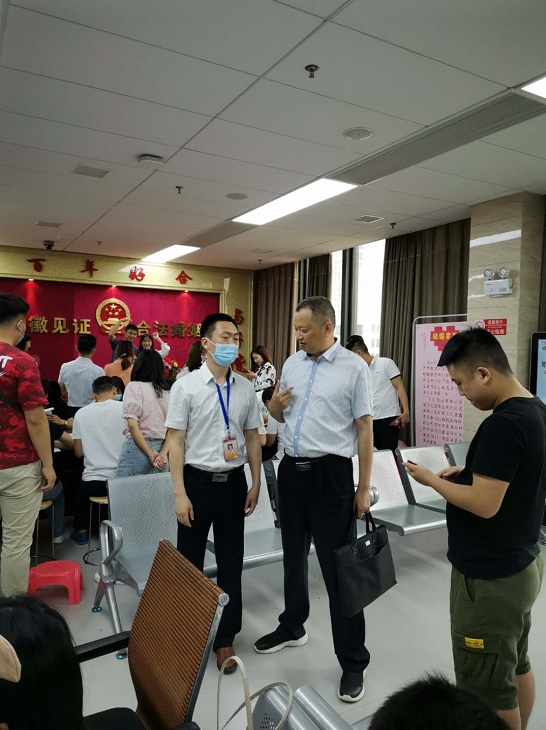 “今天办理结婚证的人很多,但大家不要着急,我们会给大家免费提供饮用水和午餐,办理婚姻登记的窗口工作人员中午不休息,加班给大家办理。”为缓解群众因排队产生的焦虑情绪,该局主要负责人安排相关股室工作人员给排队的群众免费发放饮用水,午饭时间还给排队的群众发放排队号码牌,并安排大家免费到食堂就餐。“给您个凳子,您坐着排队吧。”看到长长的队伍里面有怀孕的女士,工作人员立即给他们提供座椅。举动虽小,足以暖心。