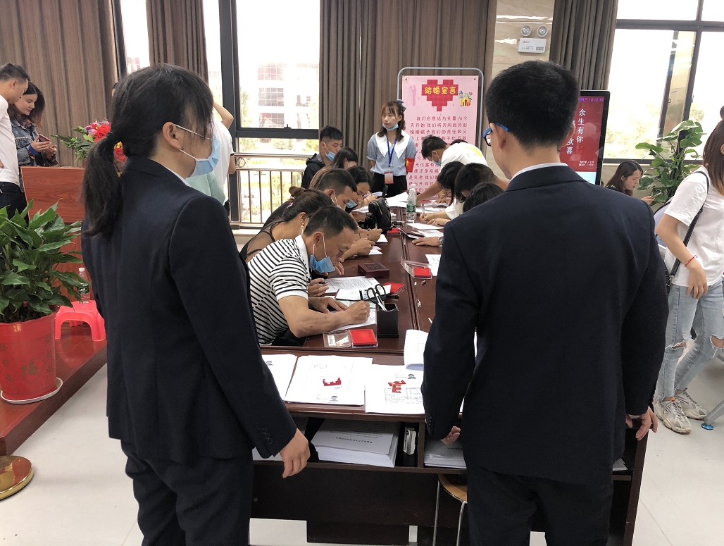2020.5.20是个适合表达爱的日子。早上7点,县行政审批服务局办公楼前排起了长队,许多情侣都选择在这个充满仪式感的日子办理结婚登记,用最实在的方式表达“我爱你”。为给每一对来领证的新人提供优质服务,该局采取了系列暖心措施,用行动助力幸福、见证幸福。