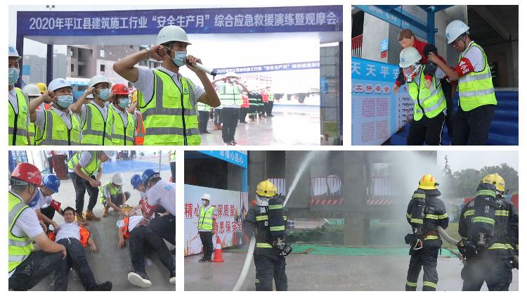 今年6月是第19个全国“安全生产月”,为预防和控制安全事故的发生,提高安全管理水平,提升应急救援能力,更好地落实“安全生产月”的活动要求,6月23日由县住建局主办,中国建筑第五工程局承办的2020年平江县建筑施工企业“安全生产月”综合应急救援演练在“颐华城·学府里”项目施工现场举行。全县施工、监理企业安全负责人,所有在建项目的安全生产管理人员,县应急管理局、县消防大队、城关镇、三阳乡相关负责人共300余人参加。