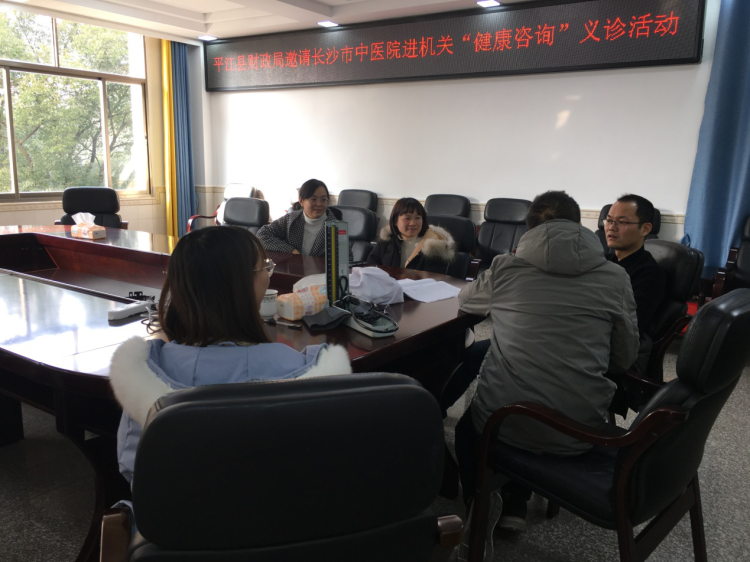 “大哥,高压150,低压90,平时饮食要多吃点清淡的,少熬夜,注意休息啊。”长沙市中医院的医生们熟练地为干部职工检查身体,这是县财政局邀请长沙市中医院数名医务人员来局为财政干部义诊的现场。