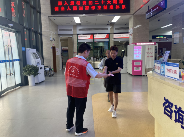 当天,该局志愿服务者在政务服务中心一楼发放宣传资料,呼吁进厅人员不要在公共场所吸烟;成立禁烟小分队,劝导和制止吸烟、随手乱扔烟头等不文明行为。同时,在政务大厅摆放禁烟海报、利用电子显示屏滚动播放禁烟宣传视频,提高人们对烟草危害的认识。