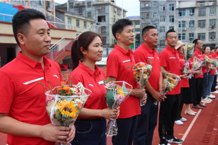 立鸿鹄之志,做盛世奋斗之我。毕业典礼在庄严的升旗仪式和雄壮的国歌声中拉开序幕。全体师生高唱国歌,注视鲜艳的五星红旗冉冉升起,高三学子的眼神充满不舍和坚毅。一束怒放鲜花,一个温暖拥抱。伴随着《感恩的心》音乐响起,高三毕业班学生代表为班主任、科任老师献上鲜花,以表达对老师三年辛勤付出的感恩之情,特别是高考冲刺阶段以来的全程陪伴与殷殷期盼。