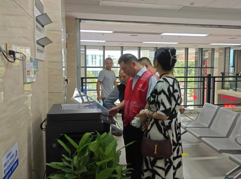 7月17日上午,政务大厅志愿者为办事群众提供免费文印服务。