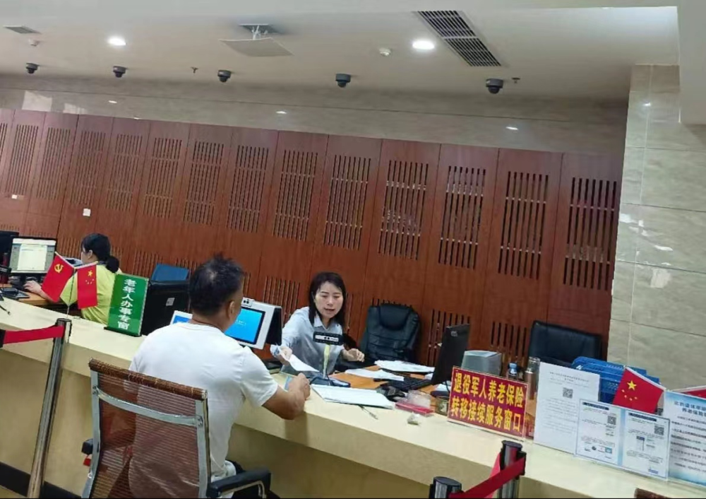 7月21日上午,人社窗口李利军提前为办事群众服务。