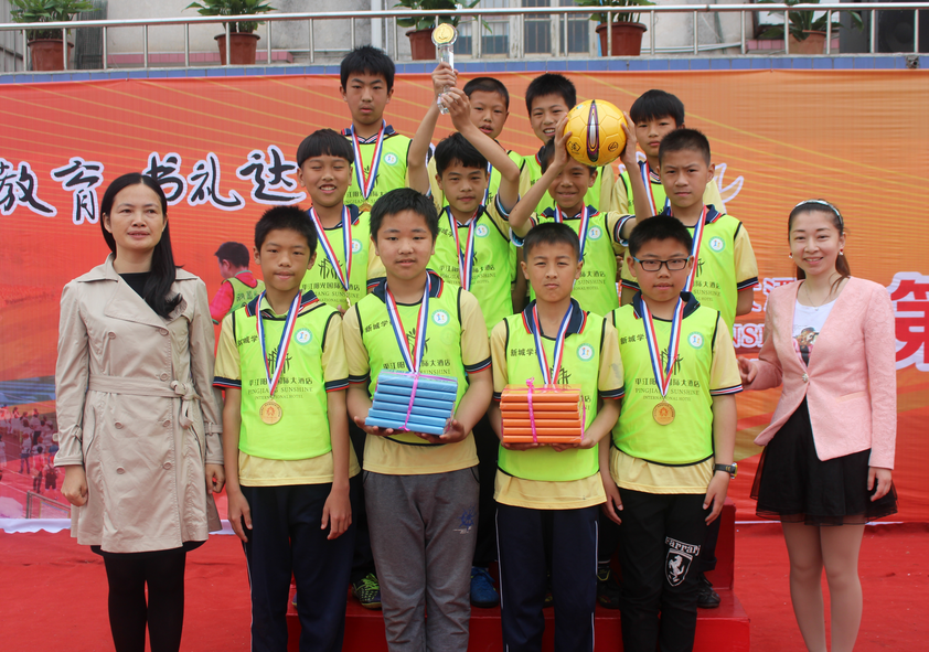 一份关怀一份温暖,2015年9月,对于新城学校是别具意义的,该校学生足球队代表全县参加了“我爱足球”中国民间足球争霸赛(岳阳赛区)暨岳阳市中小学生足球比赛,以进球57个,0失球的成绩荣获了岳阳赛区冠军,受邀参加了中超联赛年度颁奖典礼,岳阳日报以《一所山区学校的足球奇迹》进行了报道,湖南省教育厅对该校校长、校足球主教练进行了专题访谈。2016年,新城学校举行第二届校园足球文化节,阳光国际大酒店董事长叶琳女士和她的团队给了大力支持,全程赞助学校足球联赛。“阳光运动 快乐足球”的理念不仅生长在新城学校的校园里,也已经生长到了平江教育人、平江社会人的心灵。