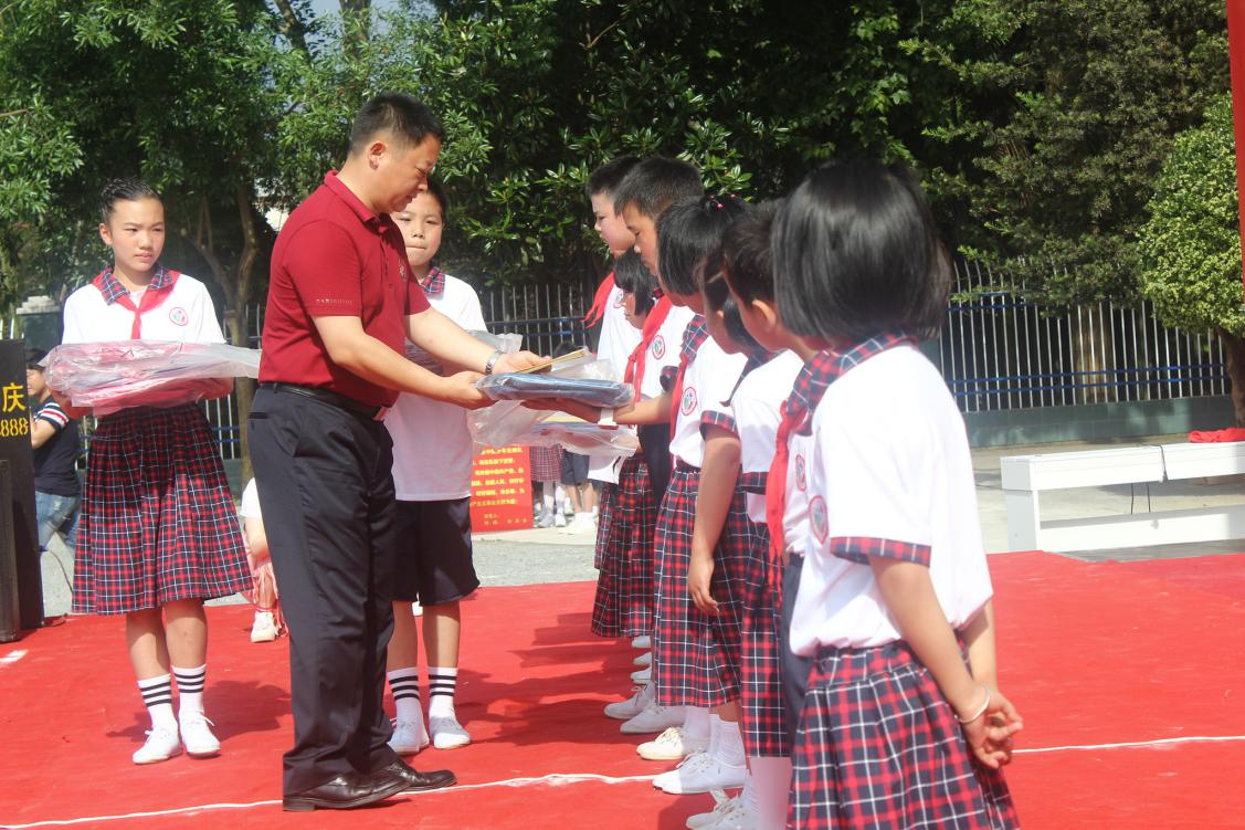 吴定辉上台致词。他鼓励孩子们好好学习、天天向上;要求老师们用心尽责,当好“灵魂”的“工程师”;寄语家长们用爱和责任全心全意呵护孩子们健康成长。平淡朴实的话语寄托着殷切的希望,让现场的师生及家长们深受鼓舞和感动。